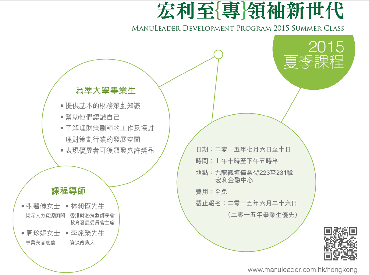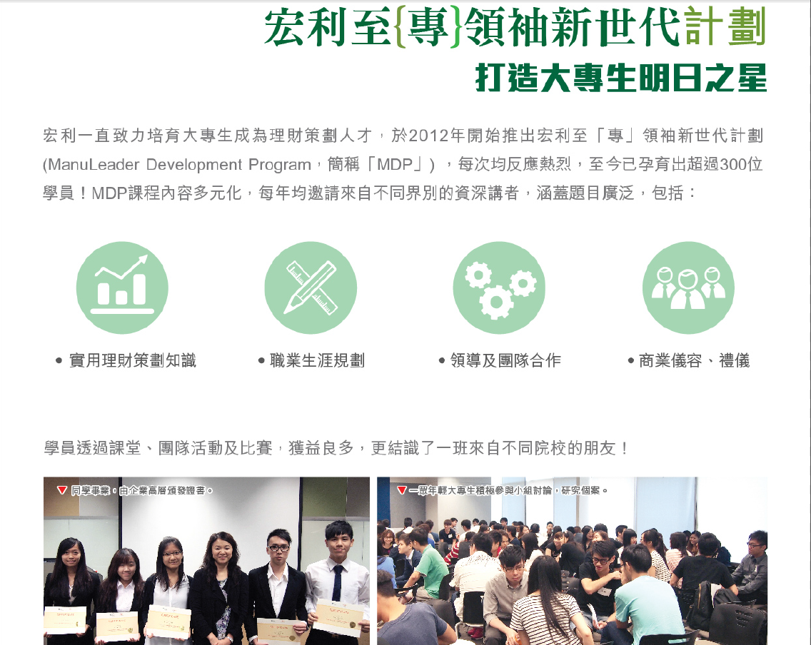> 宏利Manulife至“专”领袖新世代-------专为2015本港大学毕业生特制的就业课程